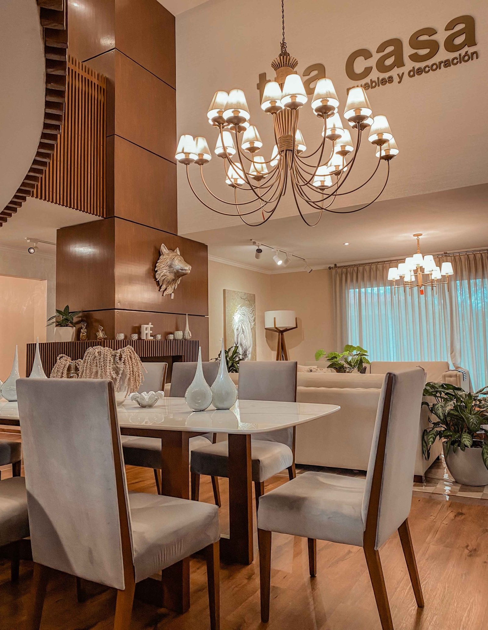 Juego de 8 sillas Lisa su estilo clásico y elegante con un diseño novedoso de madera vista en sus laterales es el toque necesario para cualquier espacio de tu hogar.