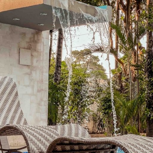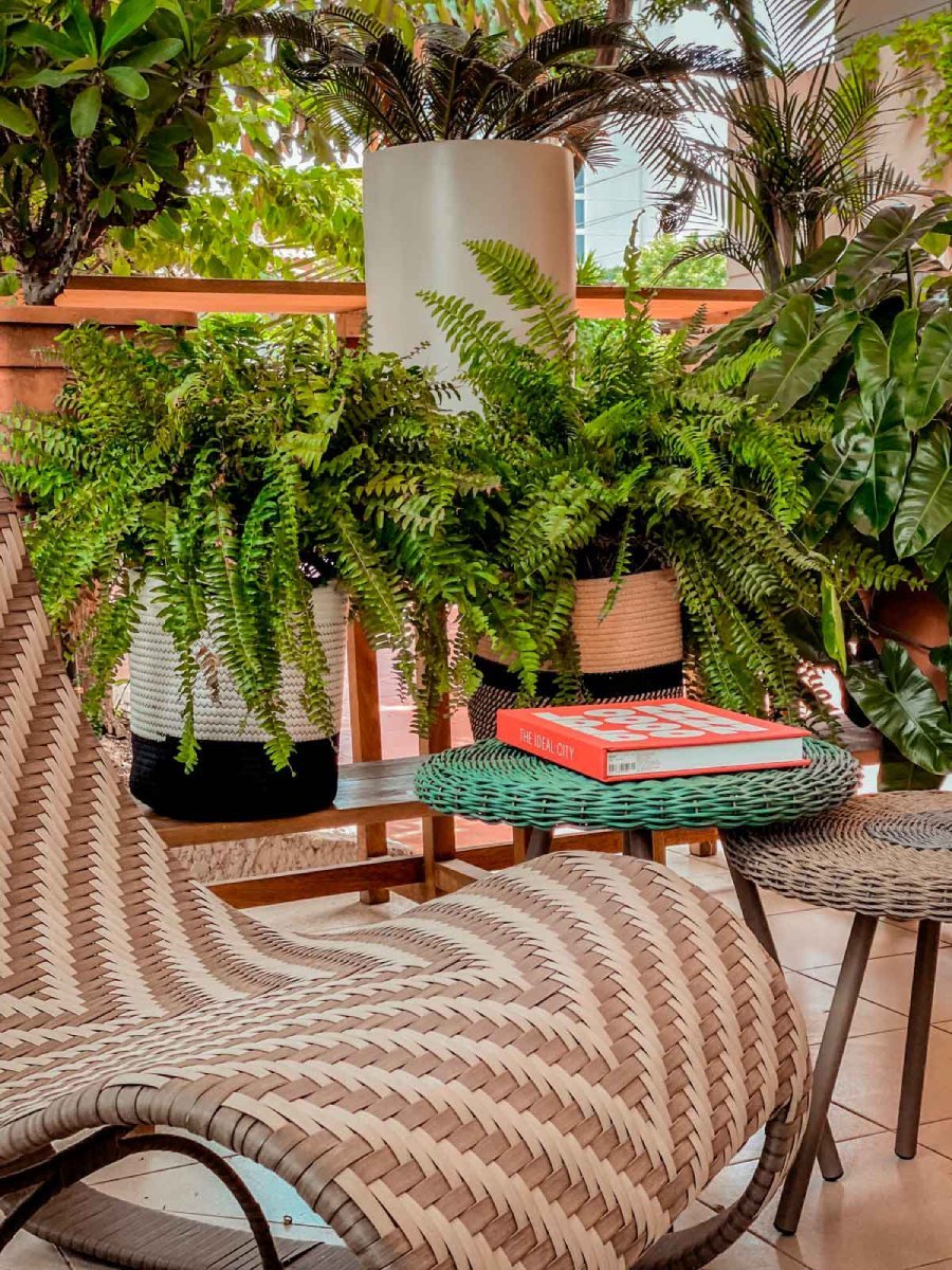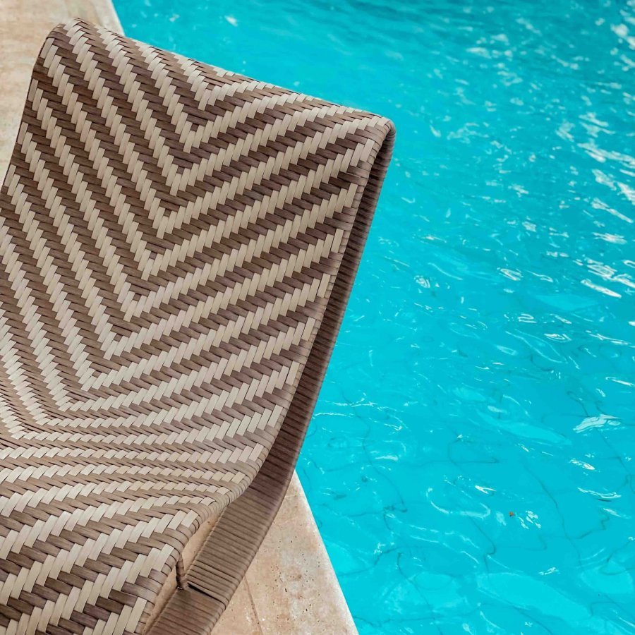 Reposera y Puff de exterior, colección contemporánea la cual se integra fácilmente en un entorno.